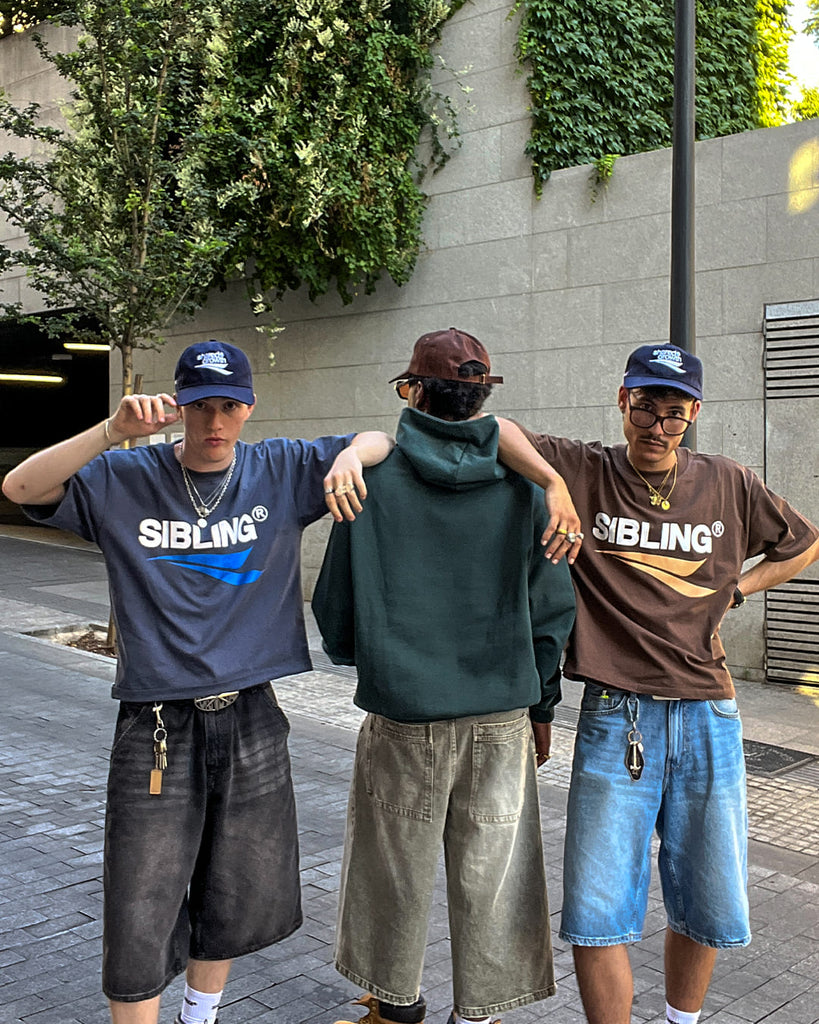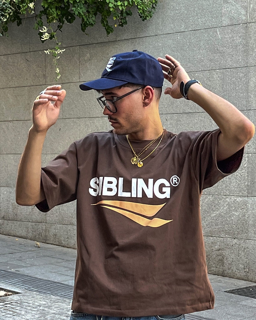 Brown oversized 300 gsm tee featuring dropped shoulders. The front showcases a screen-printed 'SIBLING' logo design, while the back displays a white 'Sibling Concept®' logo.